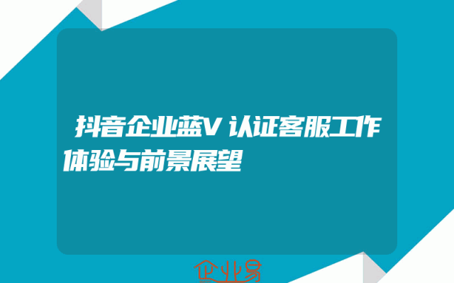 - 抖音企业蓝V认证客服工作体验与前景展望