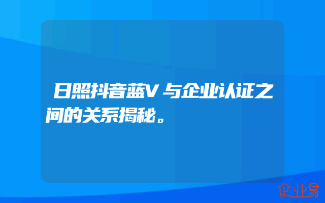 - 日照抖音蓝V与企业认证之间的关系揭秘。