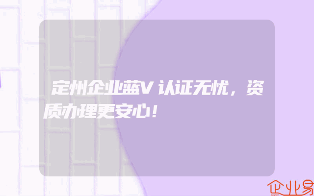 - 定州企业蓝V认证无忧,资质办理更安心!