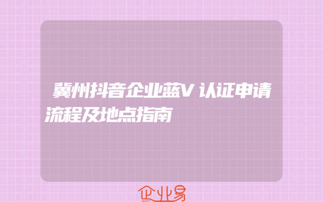 - 冀州抖音企业蓝V认证申请流程及地点指南