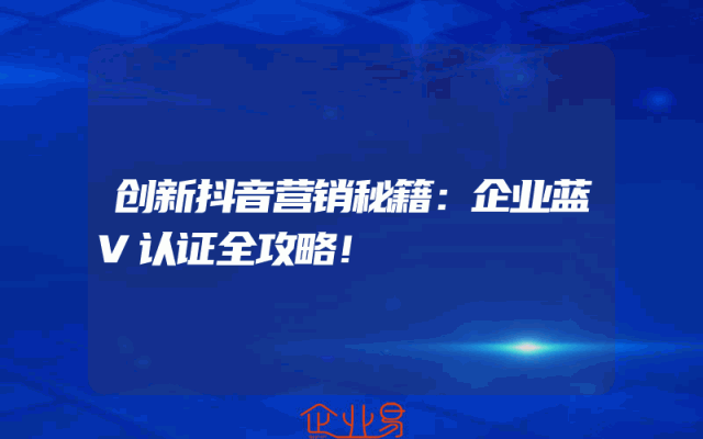 - 创新抖音营销秘籍:企业蓝V认证全攻略!
