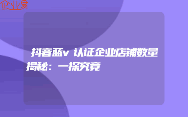 - 抖音蓝v认证企业店铺数量揭秘:一探究竟