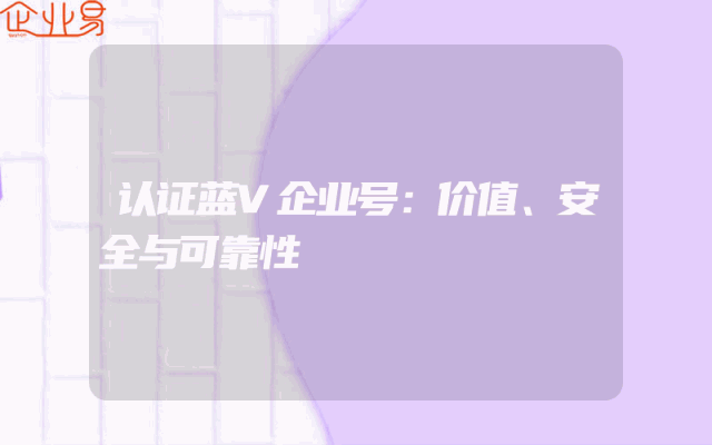 - 认证蓝V企业号:价值、安全与可靠性解析一、引言随着互联网的发展,企业号作为一种重要的社交媒体平台账号类型,已成为企业进行品牌推广、客户服务及市场活动的重要阵地。其中,蓝V企业号因其独特的标识和权威性,