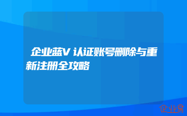 - 企业蓝V认证账号删除与重新注册全攻略一、了解蓝V认证账号首先,我们需要明确什么是企业蓝V认证账号。蓝V认证是许多社交媒体平台为企业提供的一种官方认证标识,旨在确保企业账号的真实性和权威性。拥有蓝V认证的企业账号,可以在激烈的商业竞争中,赢得
