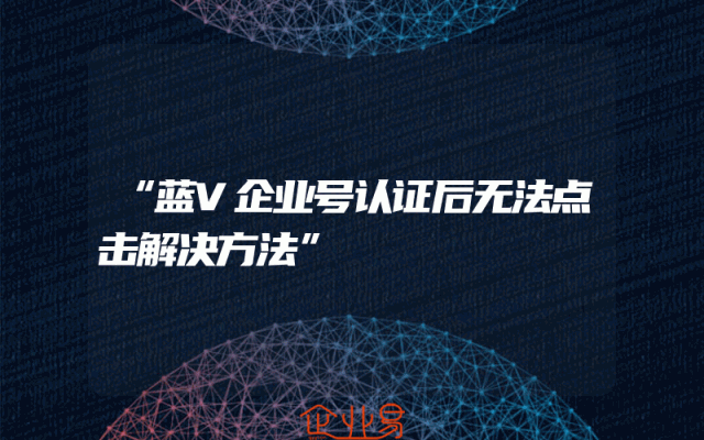 - 蓝V企业号认证后无法点击解决方法一、问题现象描述在完成蓝V企业号认证后,有时会遇到无法点击或操作异常的情况。这可能是由于多种原因导致的,包括但不限于网络问题、系统维护、账号异常等。对于这种情况,企业用户需要及时发现并采取相应的解决措施,以确