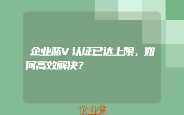 - 企业蓝V认证已达上限,如何高效解决?了解蓝V认证机制与现状随着互联网和数字技术的快速发展,企业蓝V认证逐渐成为企业展示自身实力和信誉的重要标志。当企业蓝V认证达到上限时,意味着企业在进行相关认证时遇到了瓶颈。了解认证机制及其现状是解决问题的