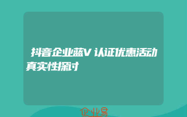 - 抖音企业蓝V认证优惠活动真实性探讨