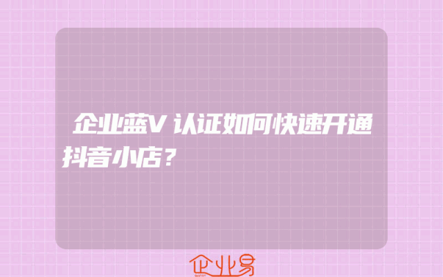 - 企业蓝V认证如何快速开通抖音小店?