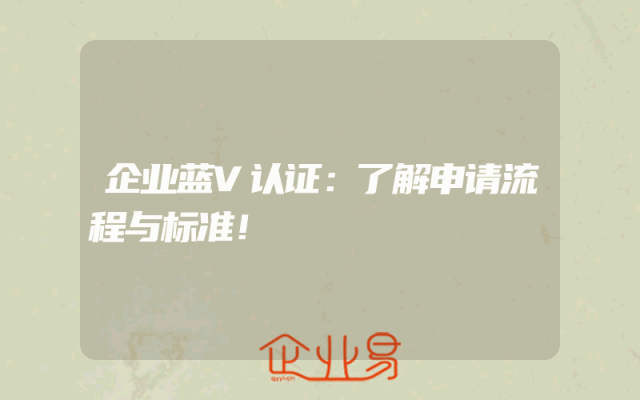 - 企业蓝V认证:了解申请流程与标准!