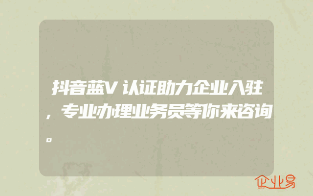 - 抖音蓝V认证助力企业入驻,专业办理业务员等你来咨询。