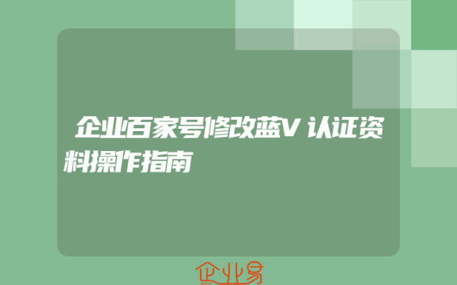 - 企业百家号修改蓝V认证资料操作指南一、了解蓝V认证的重要性在企业运营过程中,拥有一个官方认证的百家号账号对于品牌形象和公信力至关重要。蓝V认证不仅代表了企业的官方身份,还能增加用户的信任度,提升品牌知名度。因此,保持蓝V认证资料的准确和更新