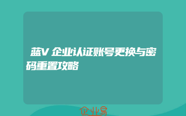 - 蓝V企业认证账号更换与密码重置攻略一、了解蓝V企业认证账号的重要性在当今数字化时代,蓝V企业认证账号已成为企业展示实力、推广品牌、拓展业务的重要工具。因此,保护好企业认证账号的安全至关重要。一个安全稳定的账号,不仅关乎企业的日常运营,更涉及