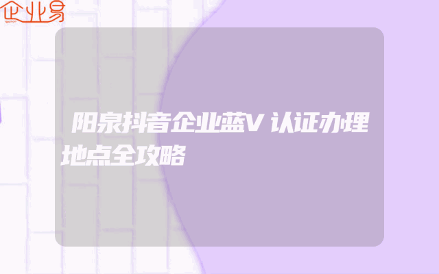 - 阳泉抖音企业蓝V认证办理地点全攻略