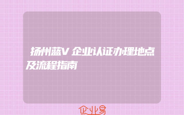 - 扬州蓝V企业认证办理地点及流程指南一、扬州蓝V企业认证办理地点扬州蓝V企业认证是企业在社交媒体平台上进行官方认证的一种方式,首先您需要知道具体的办理地点。在扬州市,您可以前往当地的工商行政管理部门或者相关的企业服务机构进行咨询和办理。此外,