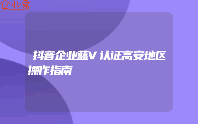 - 抖音企业蓝V认证高安地区操作指南
