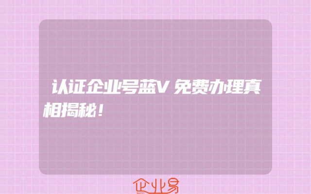 - 认证企业号蓝V免费办理真相揭秘!