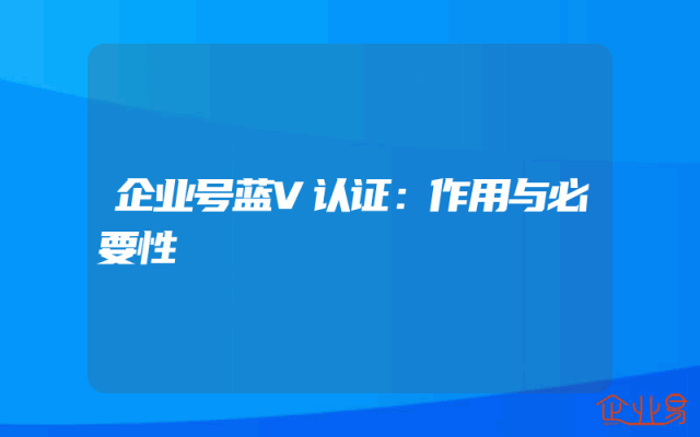 - 企业号蓝V认证:作用与必要性解析一、企业号蓝V认证的概念在当今数字化时代,社交媒体平台已成为企业宣传品牌、推广产品和服务的重要渠道。为了提升企业在社交媒体上的形象和信誉度,许多企业会选择进行企业号蓝V认证。所谓蓝V认证,是指在社交媒体平台上
