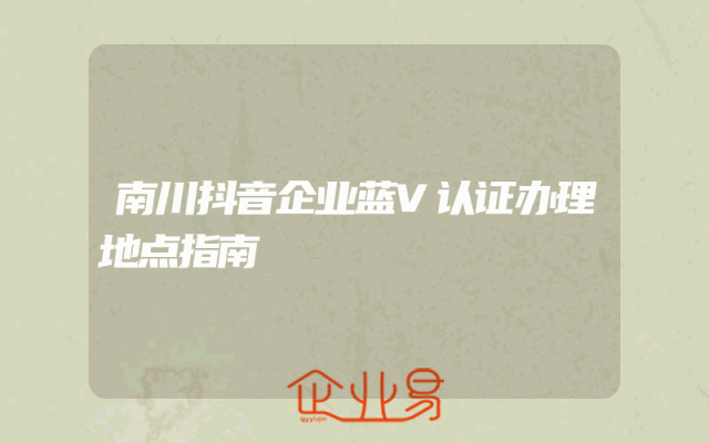 - 南川抖音企业蓝V认证办理地点指南一、引言随着互联网的迅速发展,抖音作为热门的社交媒体平台,已经成为企业推广和品牌建设的重要渠道。南川地区的企业家们纷纷意识到抖音蓝V认证的必要性,这不仅有助于提升企业的品牌知名度和影响力,还能获得更多的商业机