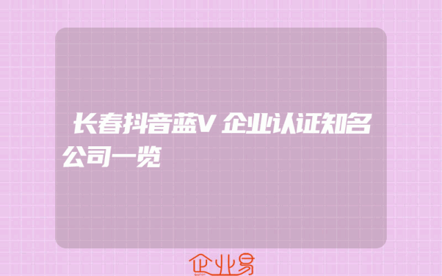 - 长春抖音蓝V企业认证知名公司一览