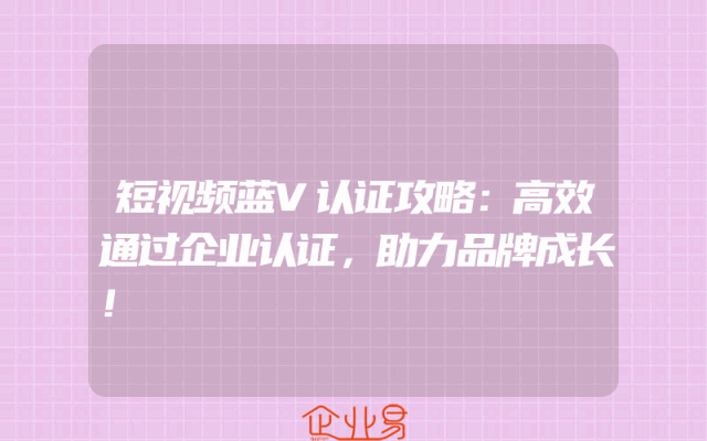 - 短视频蓝V认证攻略:高效通过企业认证,助力品牌成长!