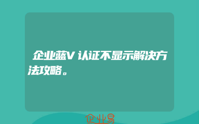 - 企业蓝V认证不显示解决方法攻略一、了解蓝V认证不显示的原因在企业使用社交媒体平台时,有时会遇到蓝V认证不显示的问题。首先,我们需要了解出现这种情况的原因。可能包括网络延迟、认证信息未更新、系统错误等。通过对这些原因的深入了解,我们才能有针对