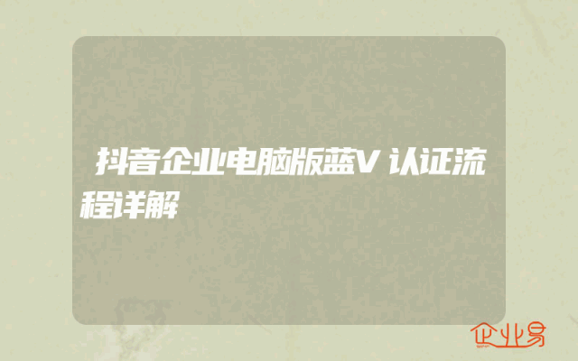 - 抖音企业电脑版蓝V认证流程详解
