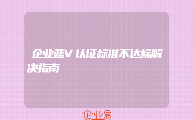 - 企业蓝V认证标准不达标解决指南
