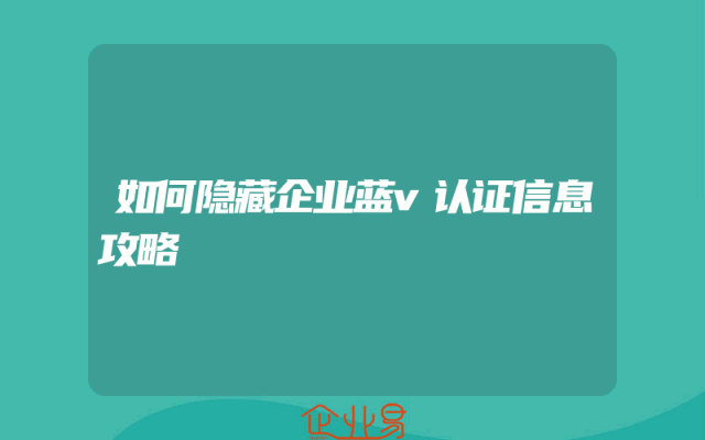 - 隐藏企业蓝V认证信息攻略了解蓝V认证标识及其意义在探讨如何隐藏企业蓝V认证信息之前,我们首先需要了解蓝V标识的含义及其在企业服务中的作用。蓝V标识是许多社交平台对企业账号的一种认证标识,它代表了企业的官方身份,有助于提升企业的公信力和品牌影