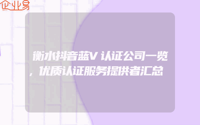 - 衡水抖音蓝V认证公司一览,优质认证服务提供者汇总