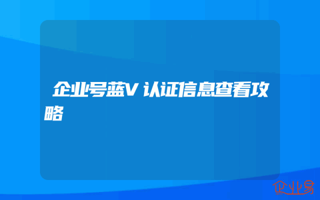 - 企业号蓝V认证信息查看指南一、蓝V认证简介在当今信息化社会,企业号作为企业在各大社交媒体平台的代表,其蓝V认证已经成为企业身份的象征。蓝V认证不仅代表了企业的官方身份,也是企业信誉的保障。通过蓝V认证的企业,可以在社交媒体上更好地展示企业形