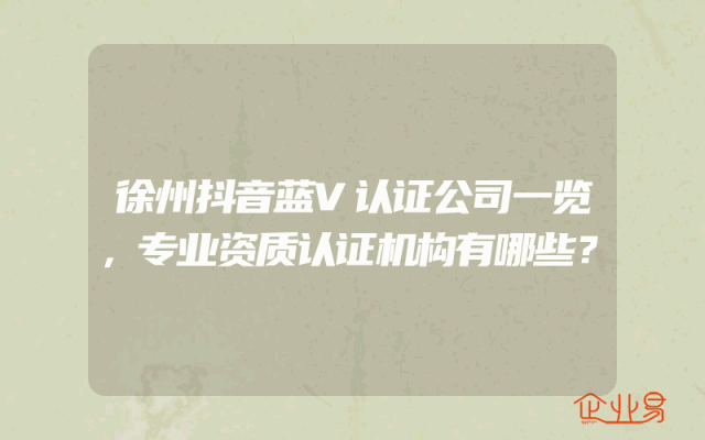 - 徐州抖音蓝V认证公司一览,专业资质认证机构有哪些?