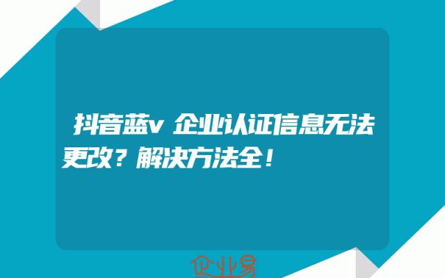 - 抖音蓝v企业认证信息无法更改?解决方法全!
