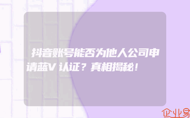 - 抖音账号能否为他人公司申请蓝V认证?真相揭秘!