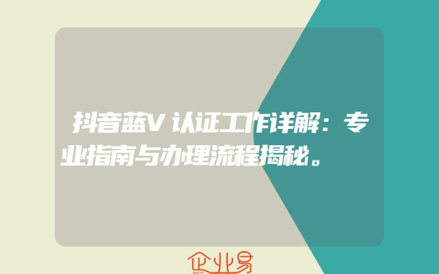 - 抖音蓝V认证工作详解:专业指南与办理流程揭秘。