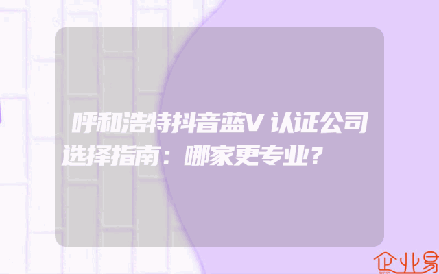 - 呼和浩特抖音蓝V认证公司选择指南:哪家更专业?