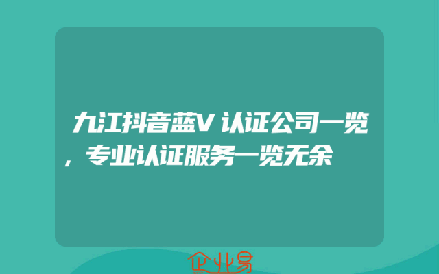 - 九江抖音蓝V认证公司一览,专业认证服务一览无余