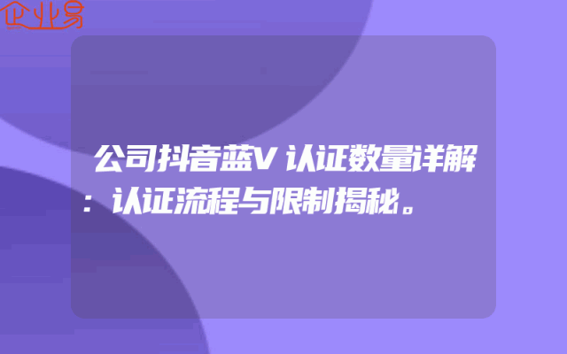 - 公司抖音蓝V认证数量详解:认证流程与限制揭秘。