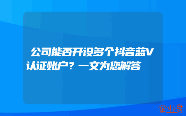 - 公司能否开设多个抖音蓝V认证账户?一文为您解答