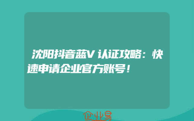 - 沈阳抖音蓝V认证攻略:快速申请企业官方账号!