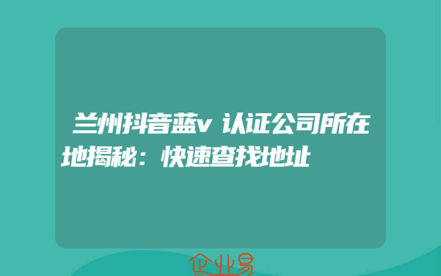 - 兰州抖音蓝v认证公司所在地揭秘:快速查找地址