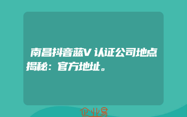 - 南昌抖音蓝V认证公司地点揭秘:官方地址。