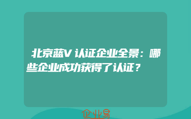 - 北京蓝V认证企业全景:哪些企业成功获得了认证?