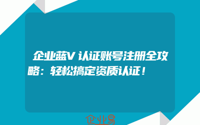 - 企业蓝V认证账号注册全攻略:轻松搞定资质认证!