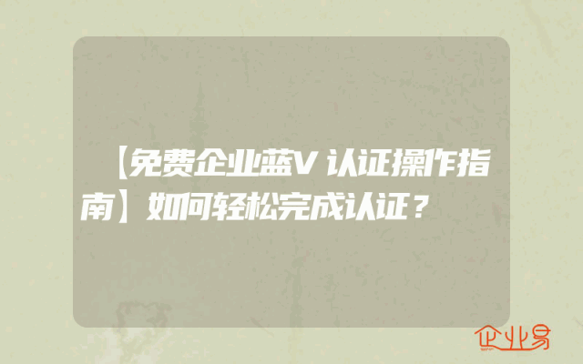 - 【免费企业蓝V认证操作指南】如何轻松完成认证?