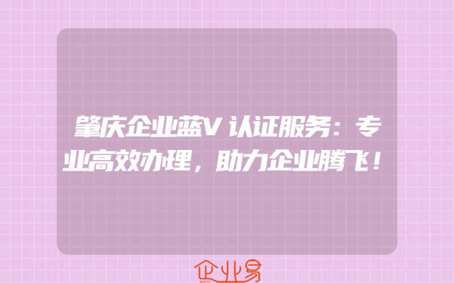 - 肇庆企业蓝V认证服务:专业高效办理,助力企业腾飞!
