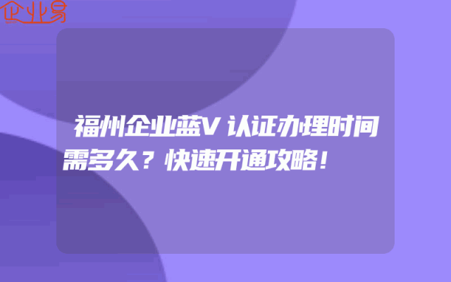 - 福州企业蓝V认证办理时间需多久?快速开通攻略!
