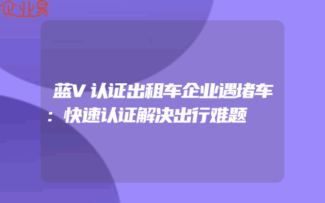 - 蓝V认证出租车企业遇堵车:快速认证解决出行难题