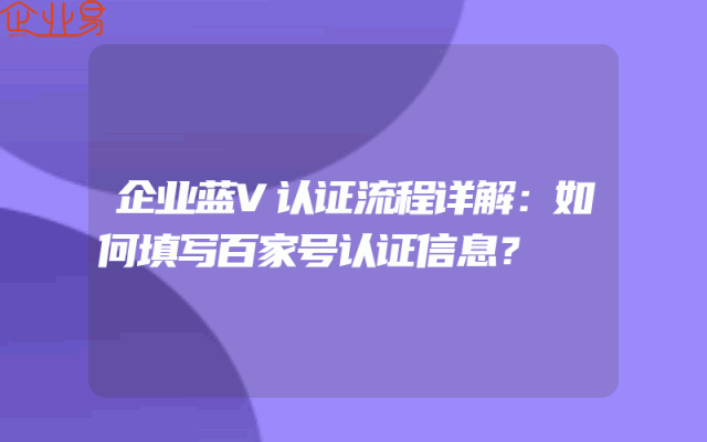 - 企业蓝V认证流程详解:如何填写百家号认证信息?