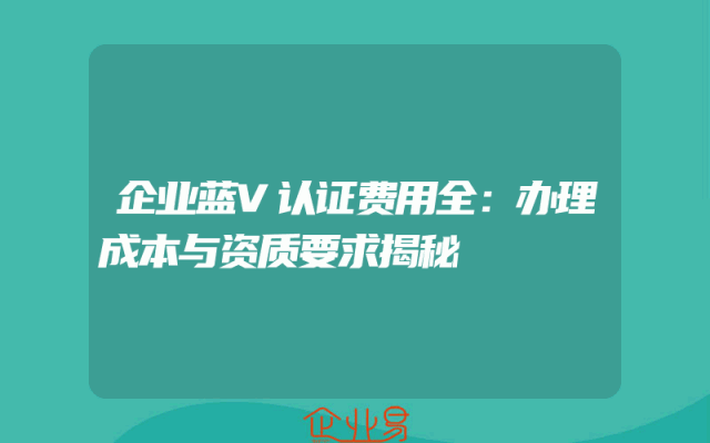 - 企业蓝V认证费用全:办理成本与资质要求揭秘