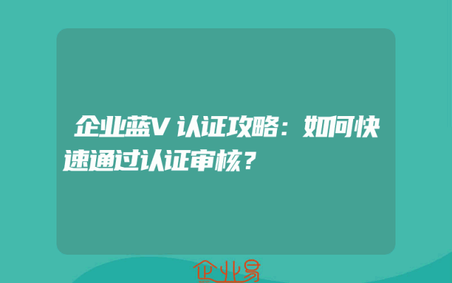 - 企业蓝V认证攻略:如何快速通过认证审核?